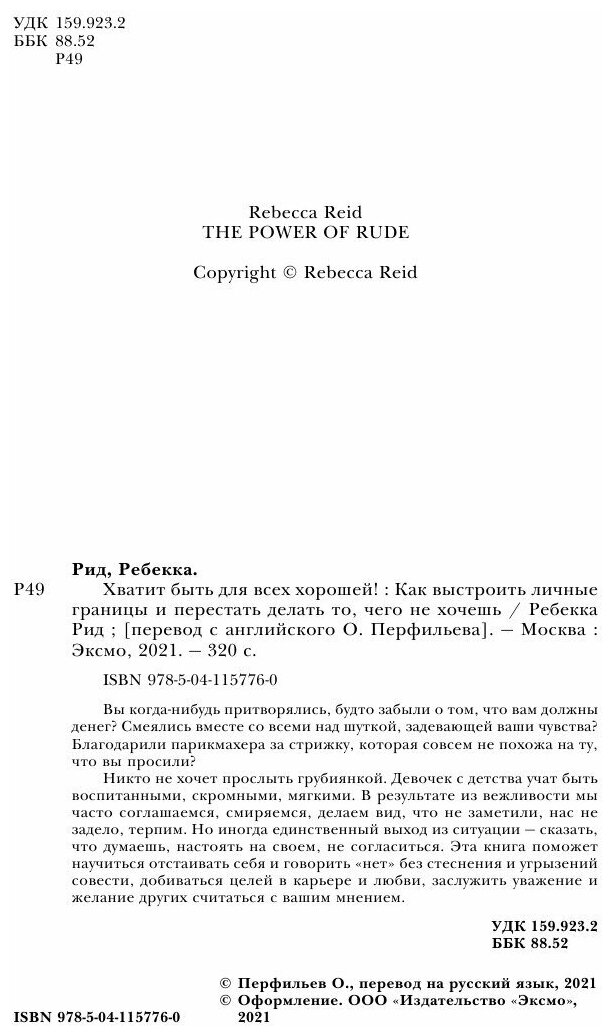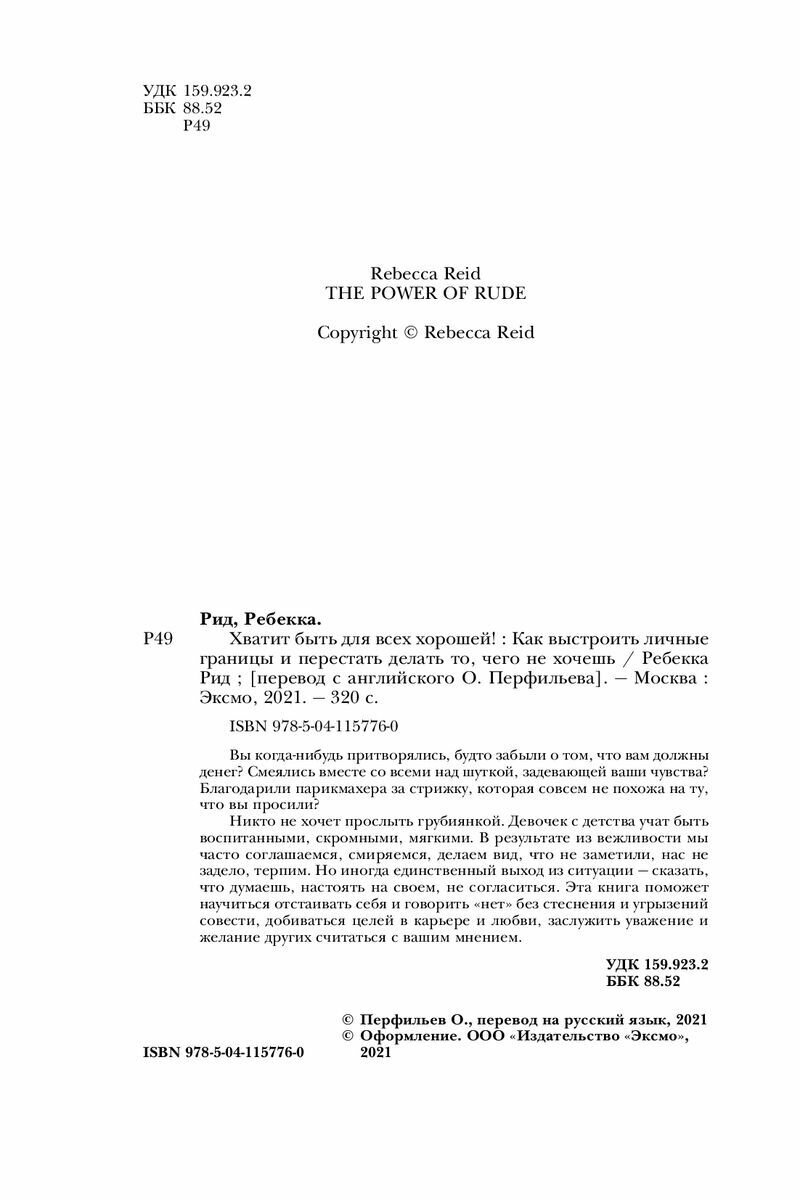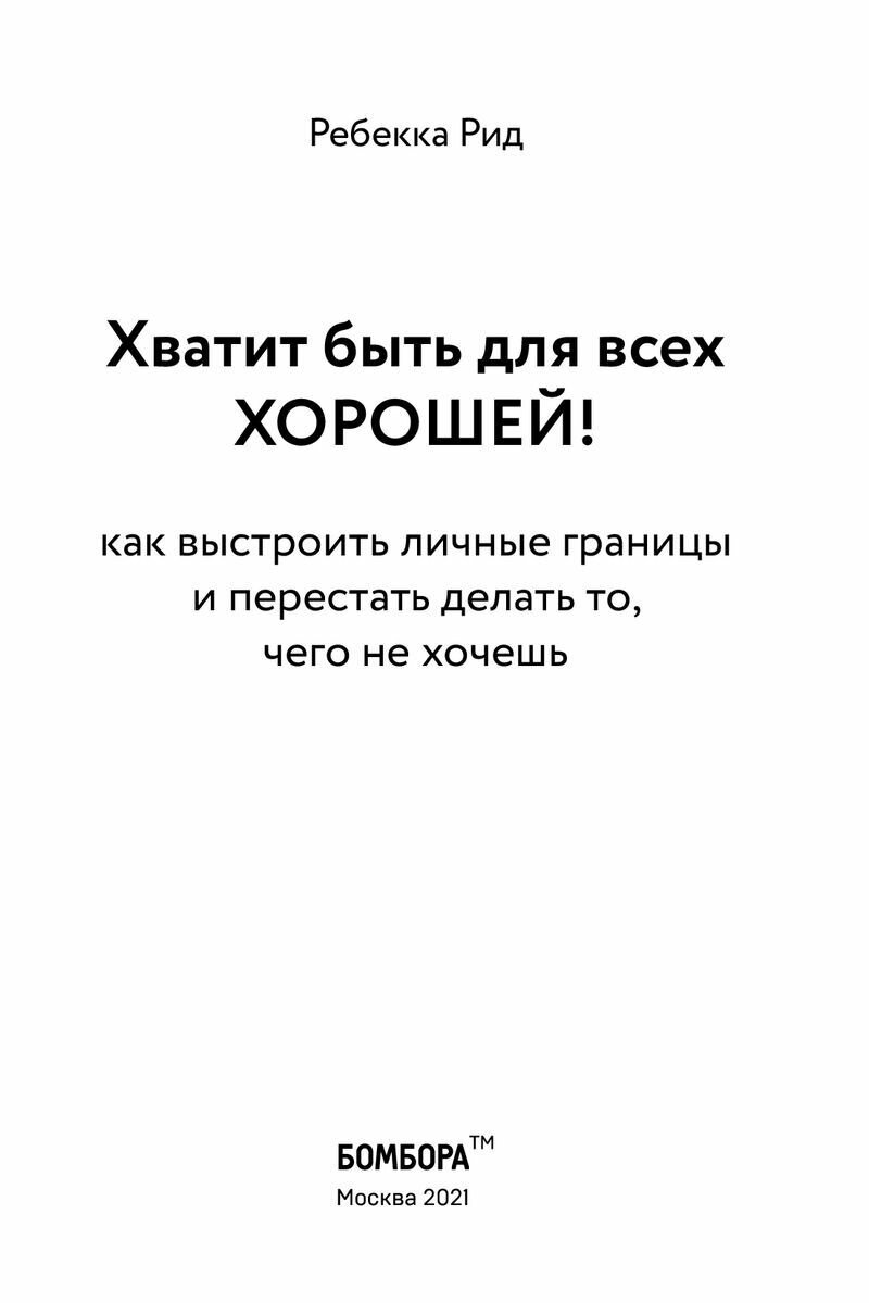 Хватит быть для всех хорошей! Как выстроить личные границы и перестать делать то чего не хочешь (Ребекка Рид); Эксмо, 2019