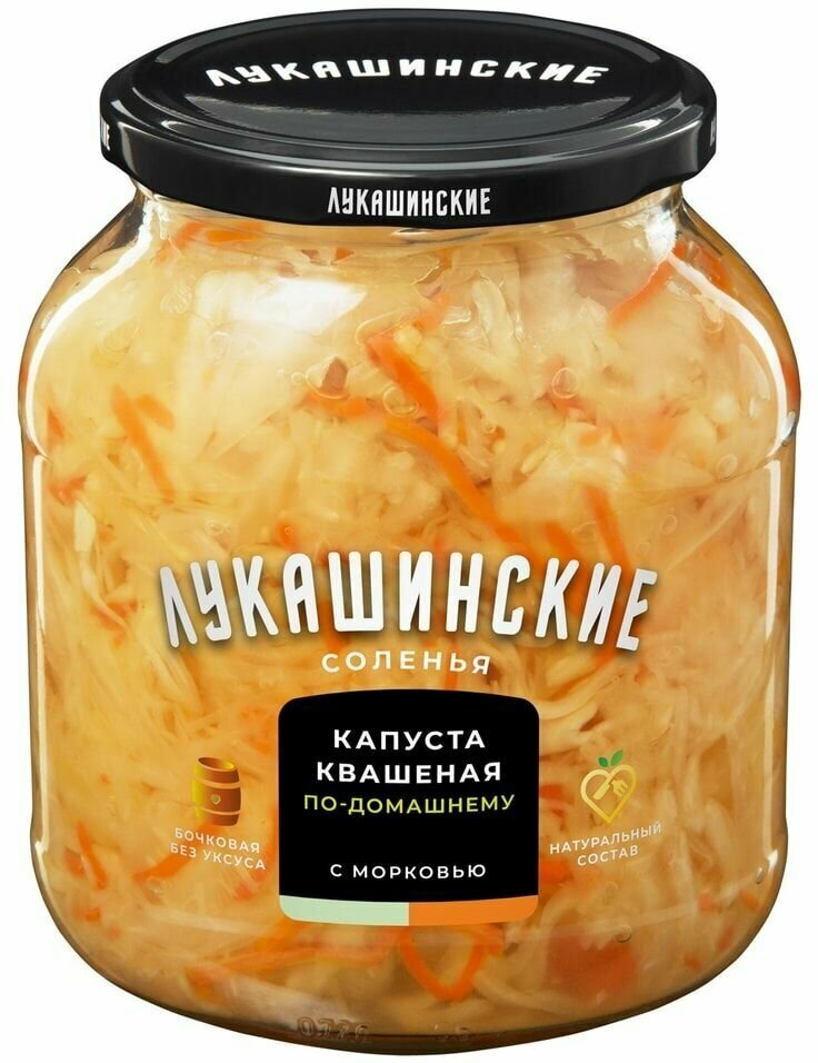 Сервис сравнения цен СкидкаГИД предлагает сравнить цены на товар «Капуста Лукашинские квашеная по-домашнему с морковью 670г»
