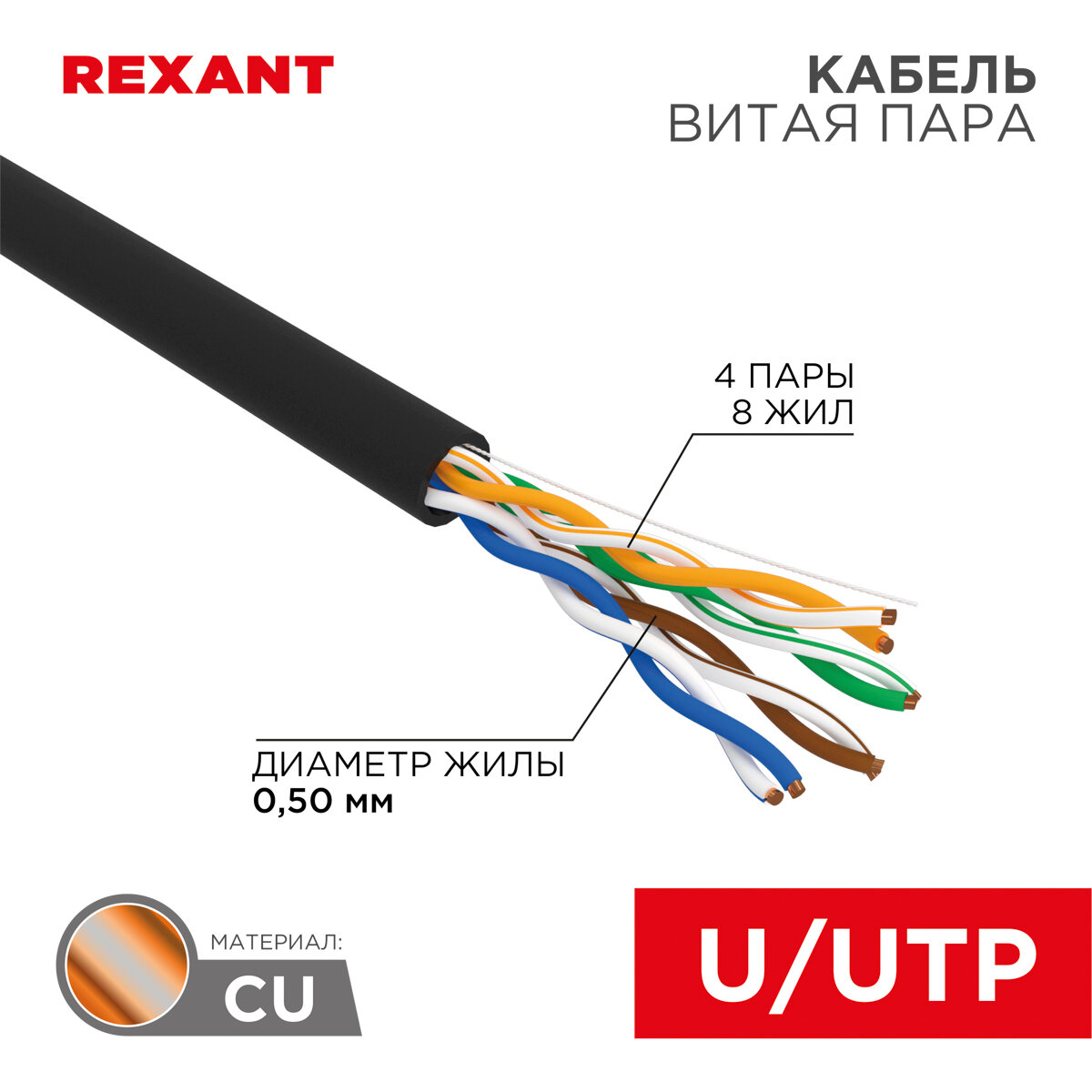 Кабель витая пара UTP 5e кат. 4 пары Rexant 01-0045-25