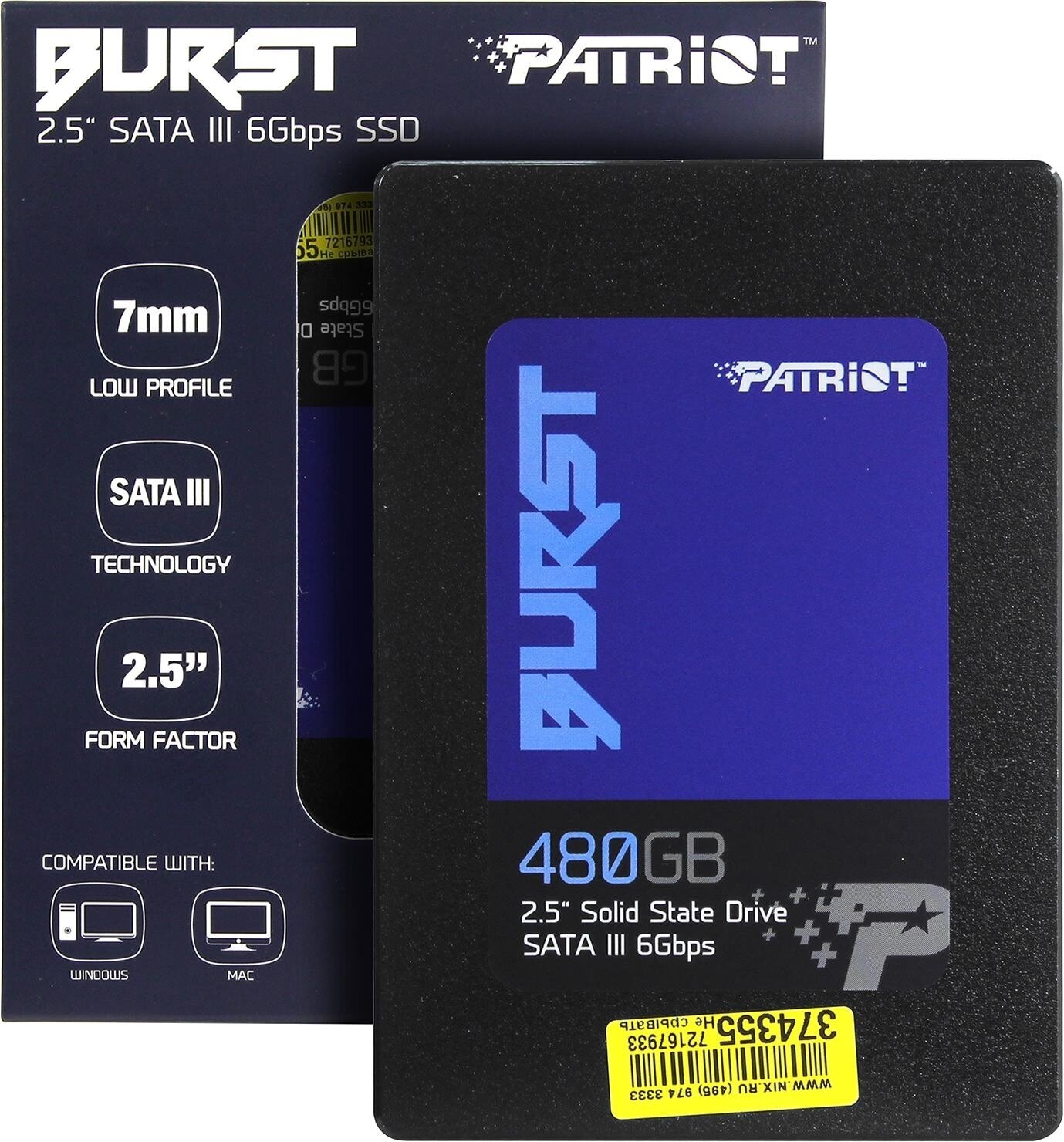 - SSD диск PATRIOT 2.5" BURST 480 Гб SATA III PBU480GS25SSDR