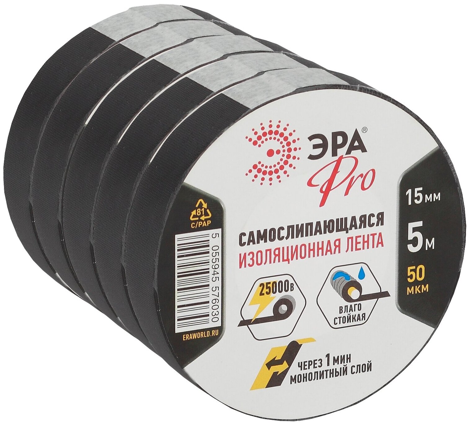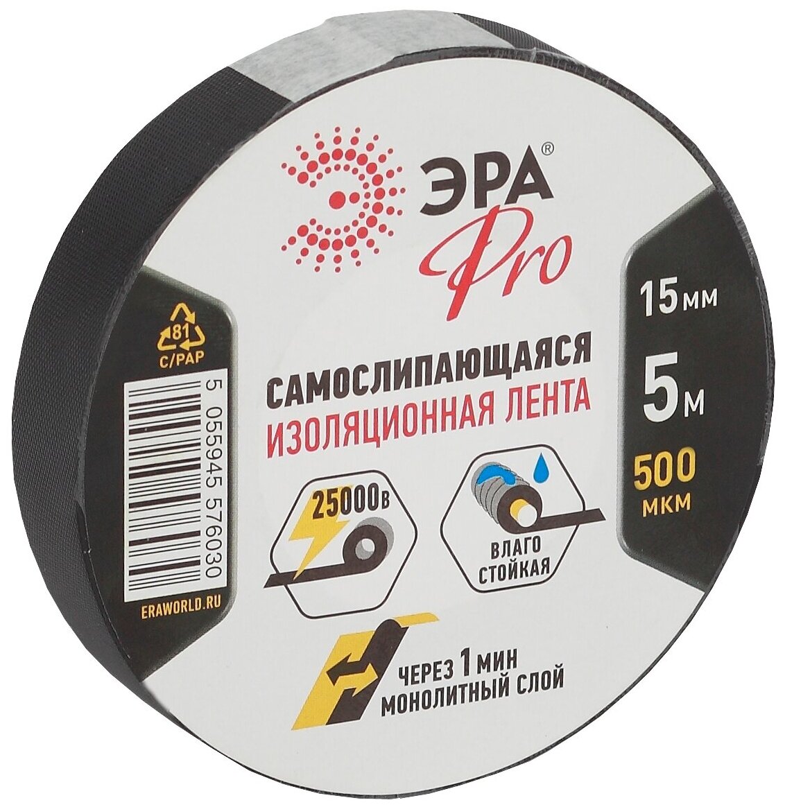 Изолента Эра PRO Самослипающаяся PROSELF ш.15мм 5м черный (Б0027916)