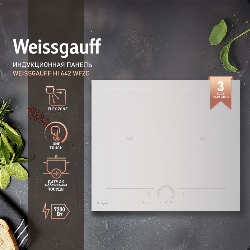 Индукционная варочная поверхность Weissgauff HI 642 WFZC белый, независимая установка, материал поверхности стеклокерамика, индукционных конфорок 4 ()