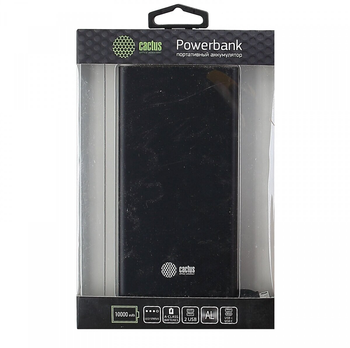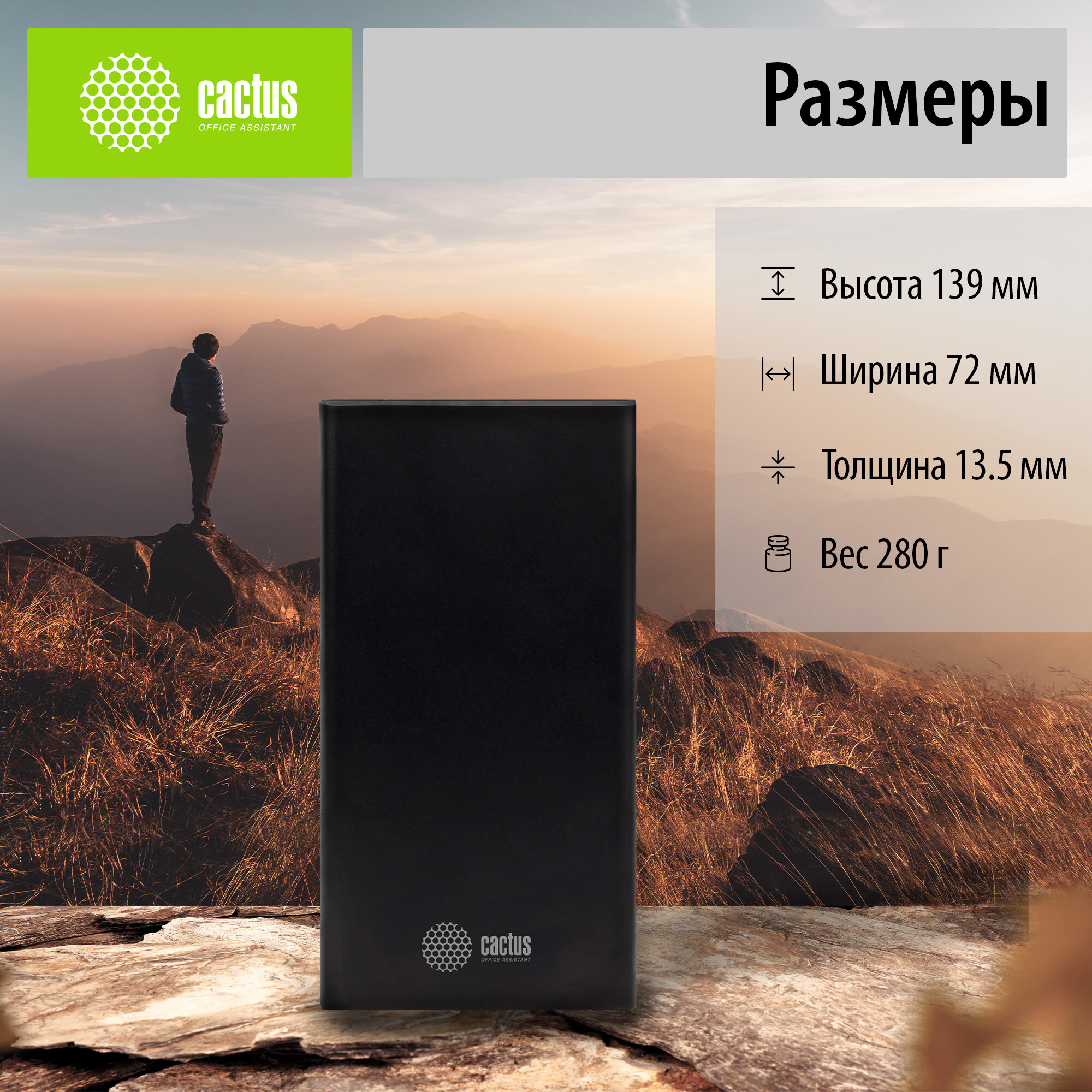Внешний аккумулятор (Power Bank) CACTUS 10000мAч черный CS-PBFSJT-10000 (размер: 72x139x13.5мм)