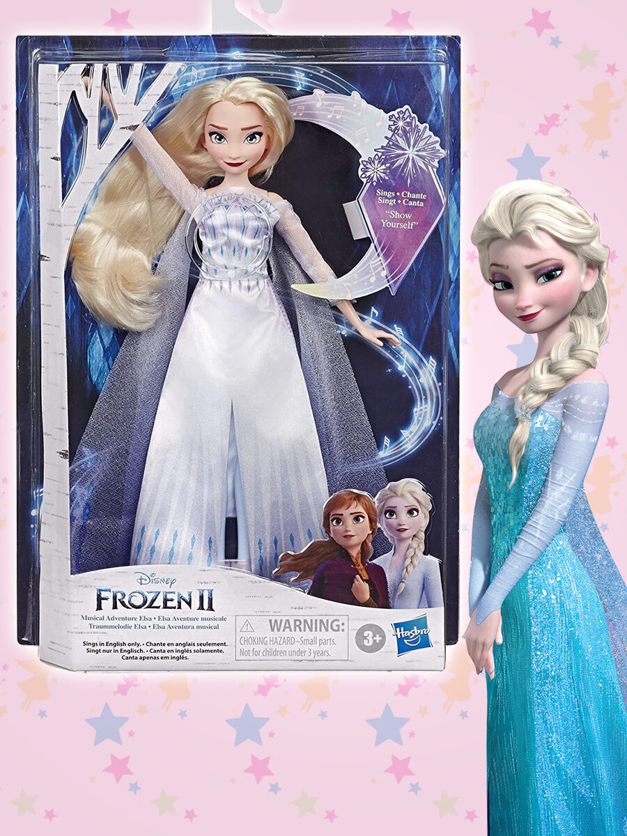 Классическая кукла Эльза в модном королевском наряде. Поет песню из мультфильма Холодное сердце 2. У кукол 5 точек подвижности, съемный текстильный наряд, туфли.