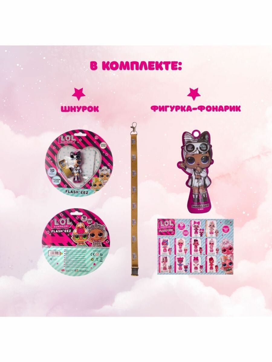 Фигурка-фонарик в виде маленькой куколки LOL Surprise, подвешивается на шнурок. В коллекции 10 вариантов куколок. Игрушка красиво светится в темноте.