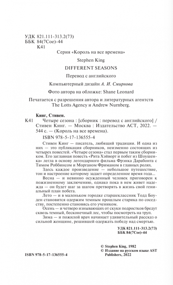 Книга: Четыре сезона (Стивен Кинг); Издательство АСТ, 1982