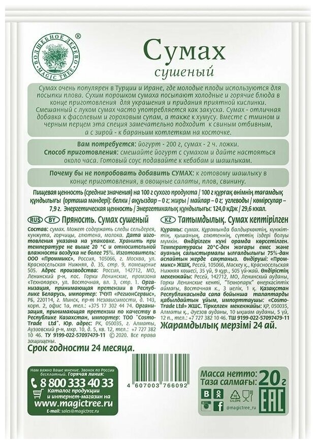 Сервис сравнения цен СкидкаГИД предлагает сравнить цены на товар «Сумах Волшебное Дерево сушеный 20г»