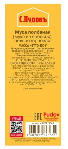 Мука С.Пудовъ Полбяная 450г