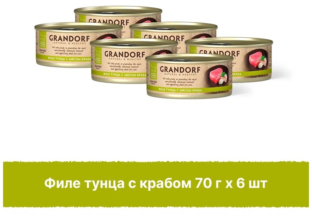 Описание о корме Grandorf консервы для кошек филе тунца с мясом краба