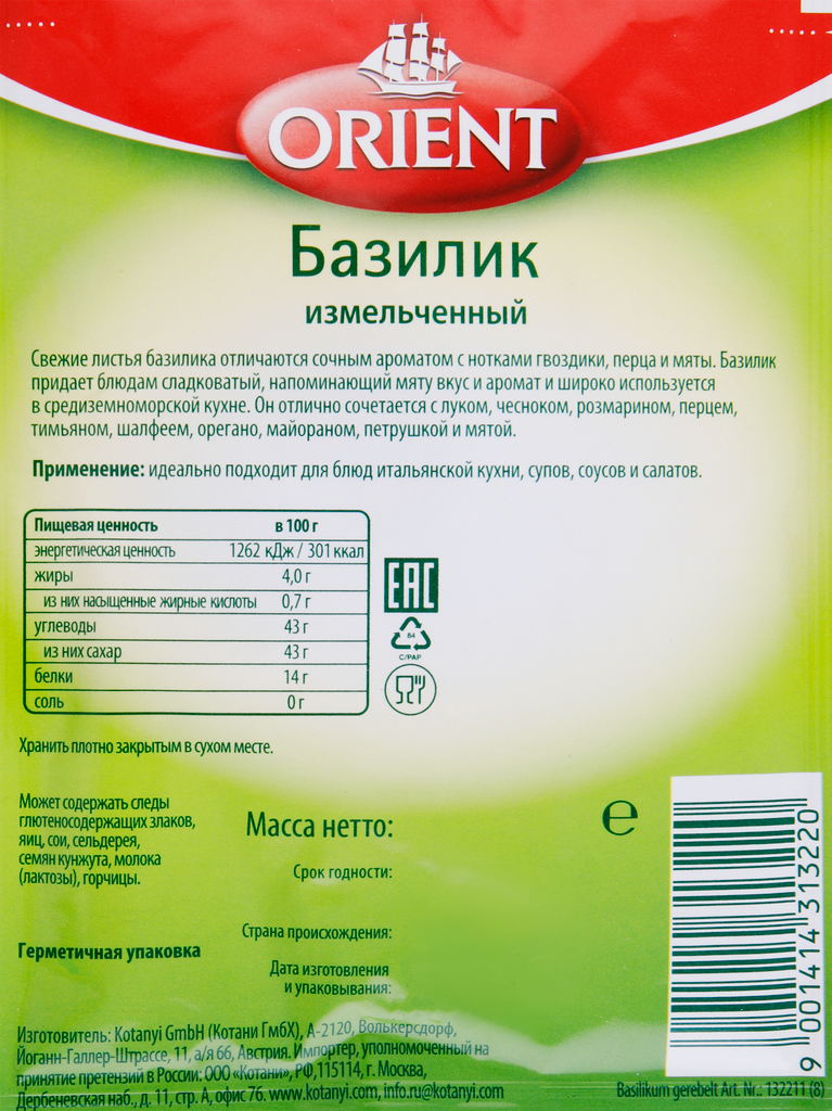 Сервис сравнения цен СкидкаГИД предлагает сравнить цены на товар «Базилик Orient измельченный 7г»