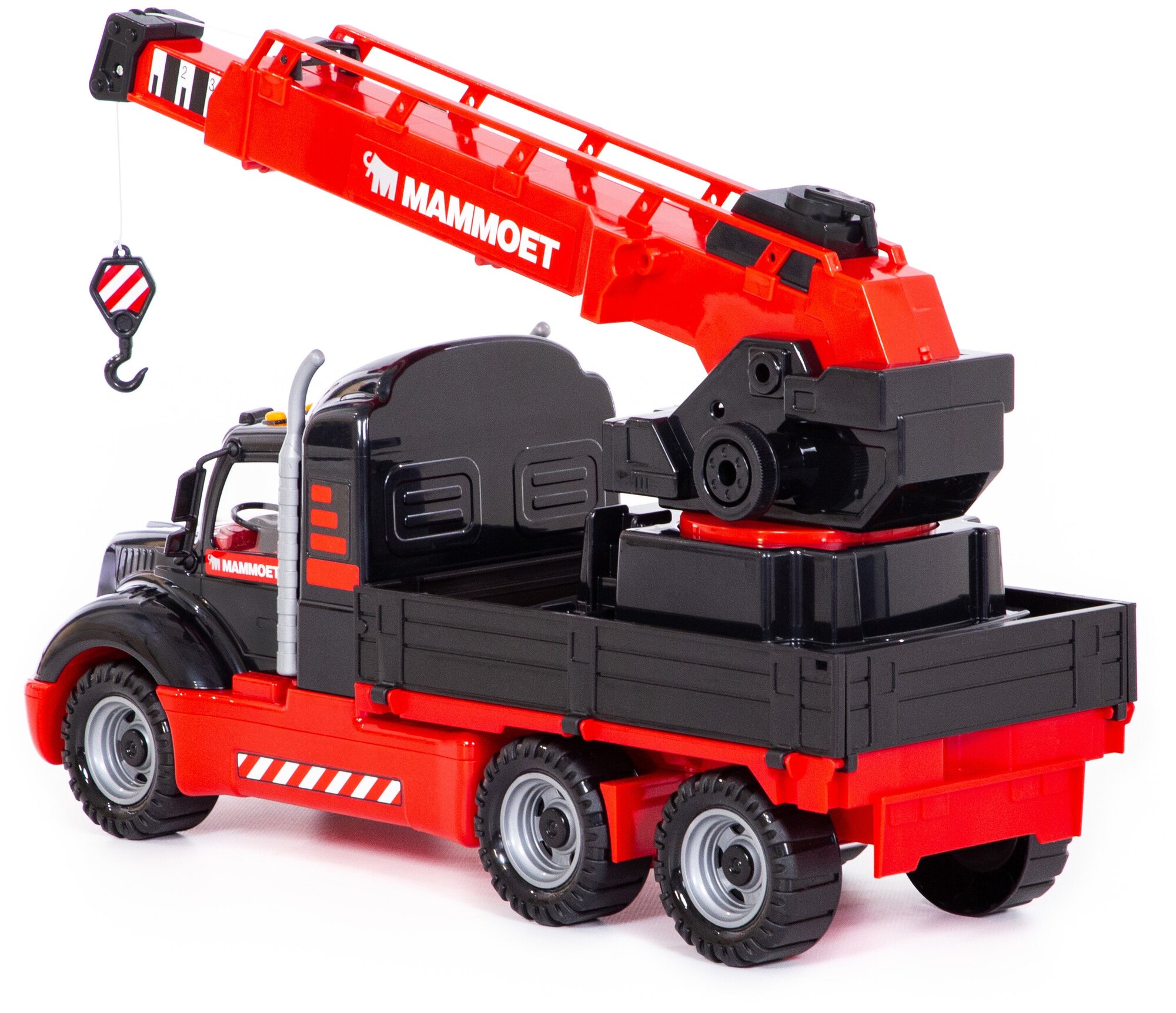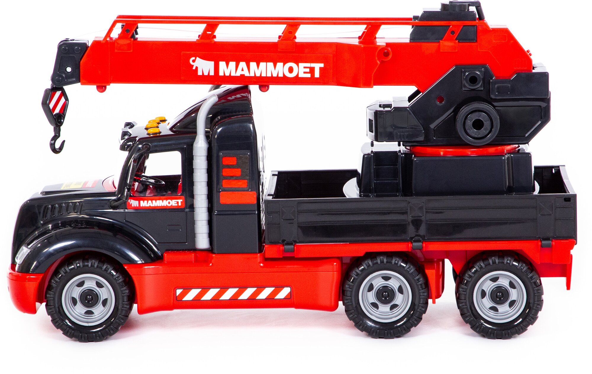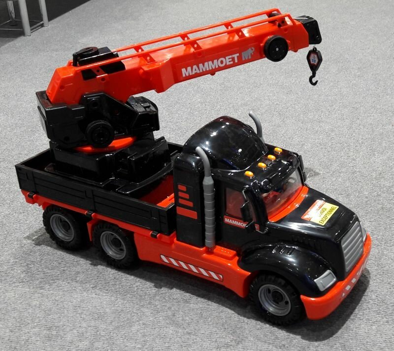 Крупнейшая в СНГ фабрика по производству игрушек «Полесье» совместно с компанией «МАММОЕТ», специализирующейся на тяжёлых подъёмных работах и транспортировке тяжёлых грузов по воде и суше, наладила выпуск лицензионной серии эксклюзивных игрушек. Дизайн игрушек разработан в соответствии с фирменными цветами и по подобию прототипов спецтехники, что делает игрушки более реалистичными. Серия предполагает наличие позиций для детей разных возрастов, с разными интересами. Автомобиль-кран уникален тем, что подъёмный механизм работает как у настоящего крана. Платформа крана поворачивается на 360°, стрела крана поднимается на 45° и выдвигается. Трос в виде верёвочки опускается с помощью лебёдки на 50 см. Кроме того, борта автомобиля можно открыть или снять. Автомобиль надёжный, имеет достойный внешний вид и относится к подарочной серии автомобилей.