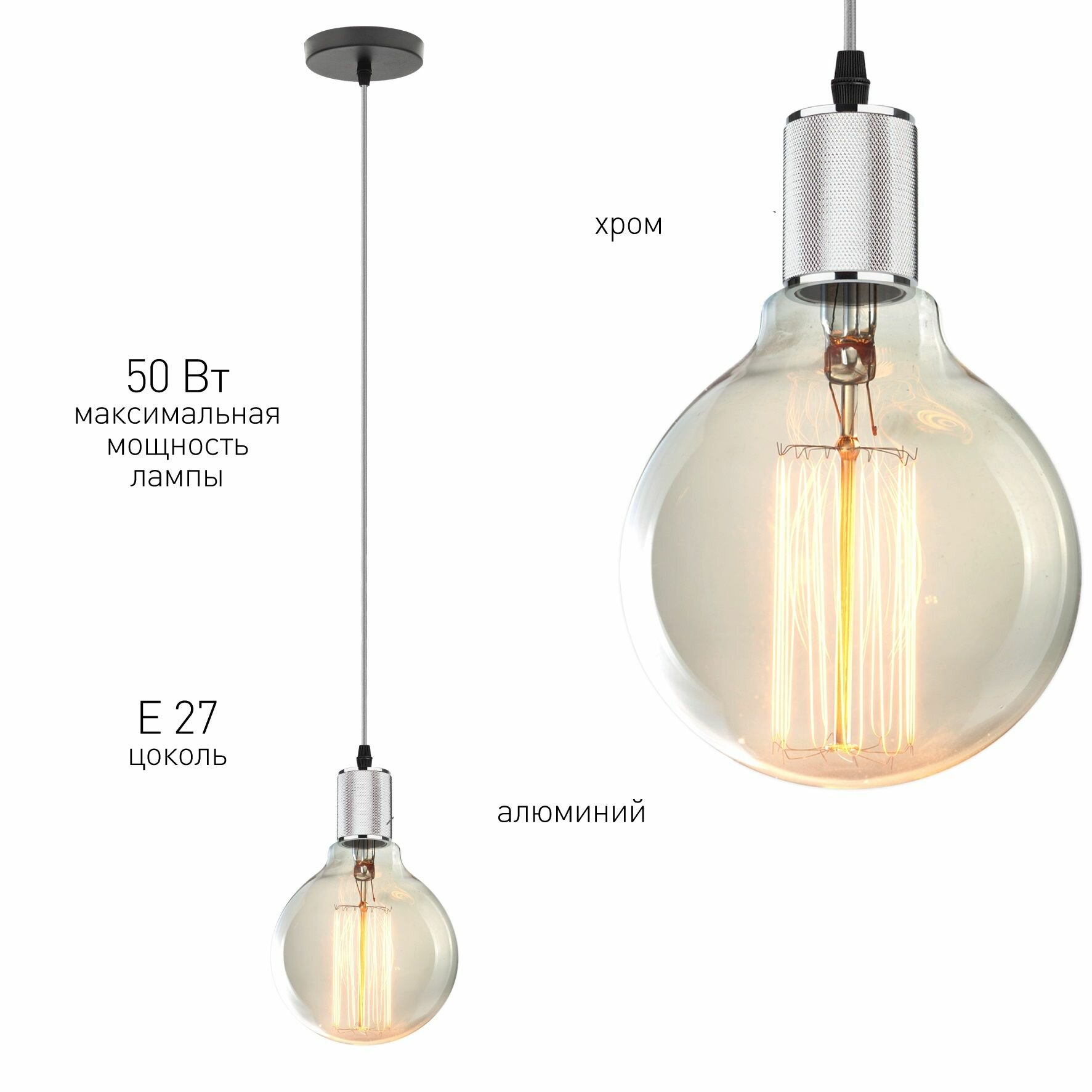 Светильник подвесной PL13 E27 - 5 CH является универсальным источником света, легко монтируется и демонтируется в потолок. Создает неповторимый дизайн и уют в помещении. Подходит для спален, гостинной, столовой и других комнат. Цоколь для источника света E27, напряжение питания 220В ~50/60Гц, материал алюминий, цвет светильника хром, размер плафона H45*D64+1000 длинна провода, максимальная мощность лампы 50 Вт, степень защиты IP20
