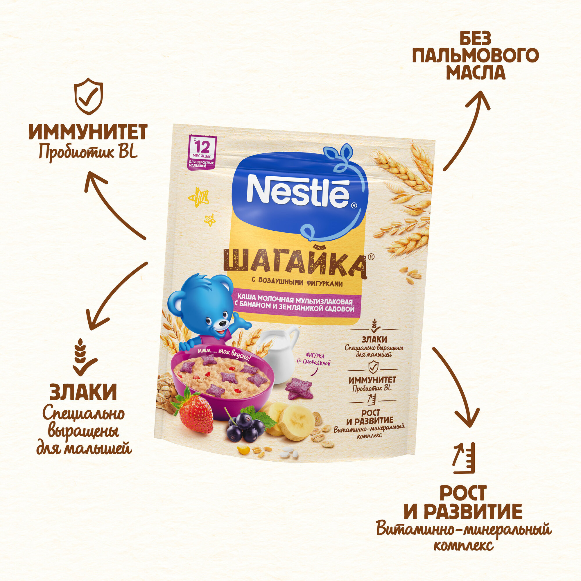 Nestle® Молочная мультизлаковая каша "Шагайка" с бананом и воздушными фигурками 190гр 12327818