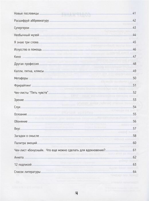 В книге предложено более 30 упражнений как по мотивам мировых методик развития креативности, так и из личного тренерского опыта работы автора на молодежных мероприятиях. А также шесть чек-листов того, что можно сделать для расширения кругозора и тренировки органов чувств.