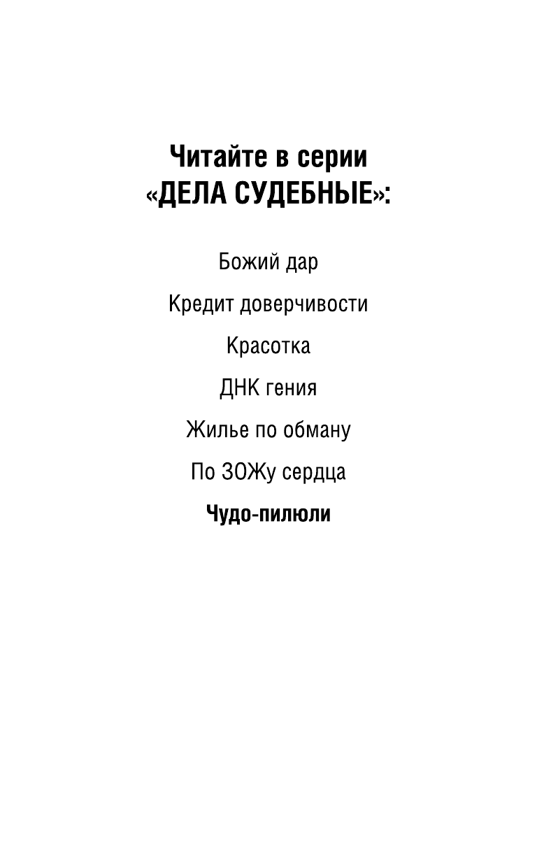 Судья Елена Кузнецова уже вынесла справедливые решения по многим резонансным делам. На очереди - новое расследование, на этот раз напрямую касающееся ее семьи. Чем все закончится - рассказывает новый остросюжетный роман Татьяны Устиновой и Павла Астахова "Чудо-пилюли".