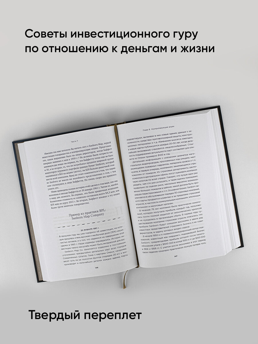- В книге впервые представлена подборка писем Уоррена Баффетта партнерам. Это своего рода летопись его представлений, подходов и размышлений в период до приобретения более известной публике компании Berkshire Hathaway.
