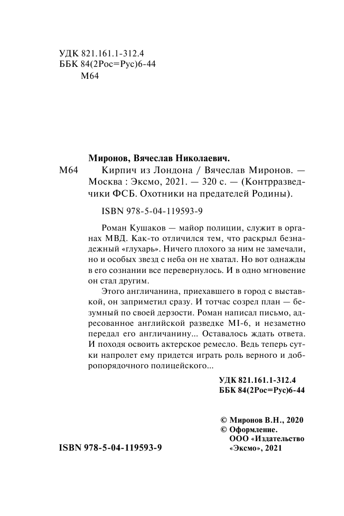 Книга: Кирпич из Лондона (Миронов Вячеслав Николаевич); ООО "Издательство "Эксмо", 2021
