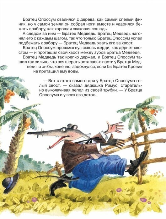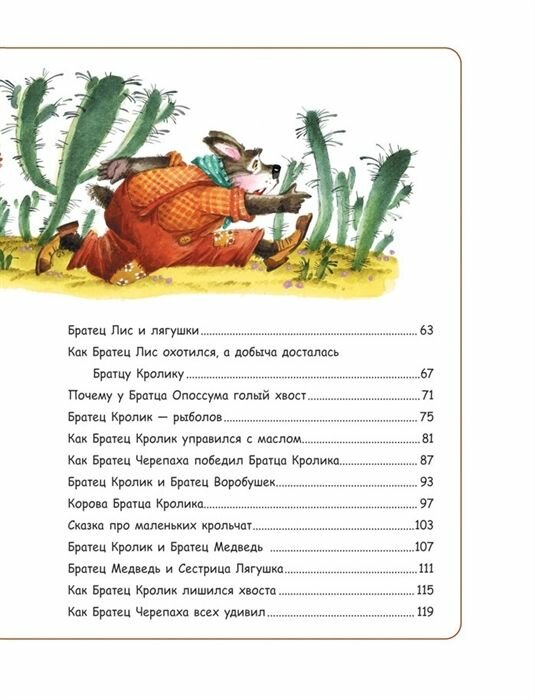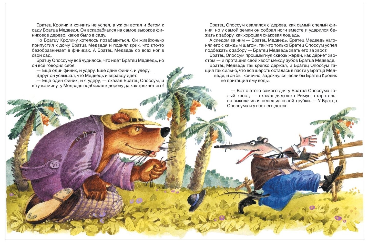 Одна из наиболее привлекательных книг этого автора по исполнению. Содержание полное, в нее вошли все истории, что считаются классическими. Замечательные небольшие рассказы о животных, которые, судя по пальмам и кактусам сагуаро, живут в пустынном штате Аризона. Скудная растительность, выжженные жарким солнцем земли. Художник хорошо передал атмосферу произведения. Персонажи это рассказчик, его слушатель, разные звери, плюс семейство матушки Мидоус. Животные типичные представители тех мест. Все персонажи очень достоверно изображены, они колоритные, характерные. Мне нравится, что внешне показана принадлежность к той местности, в том числе одежда в стиле ковбоев.