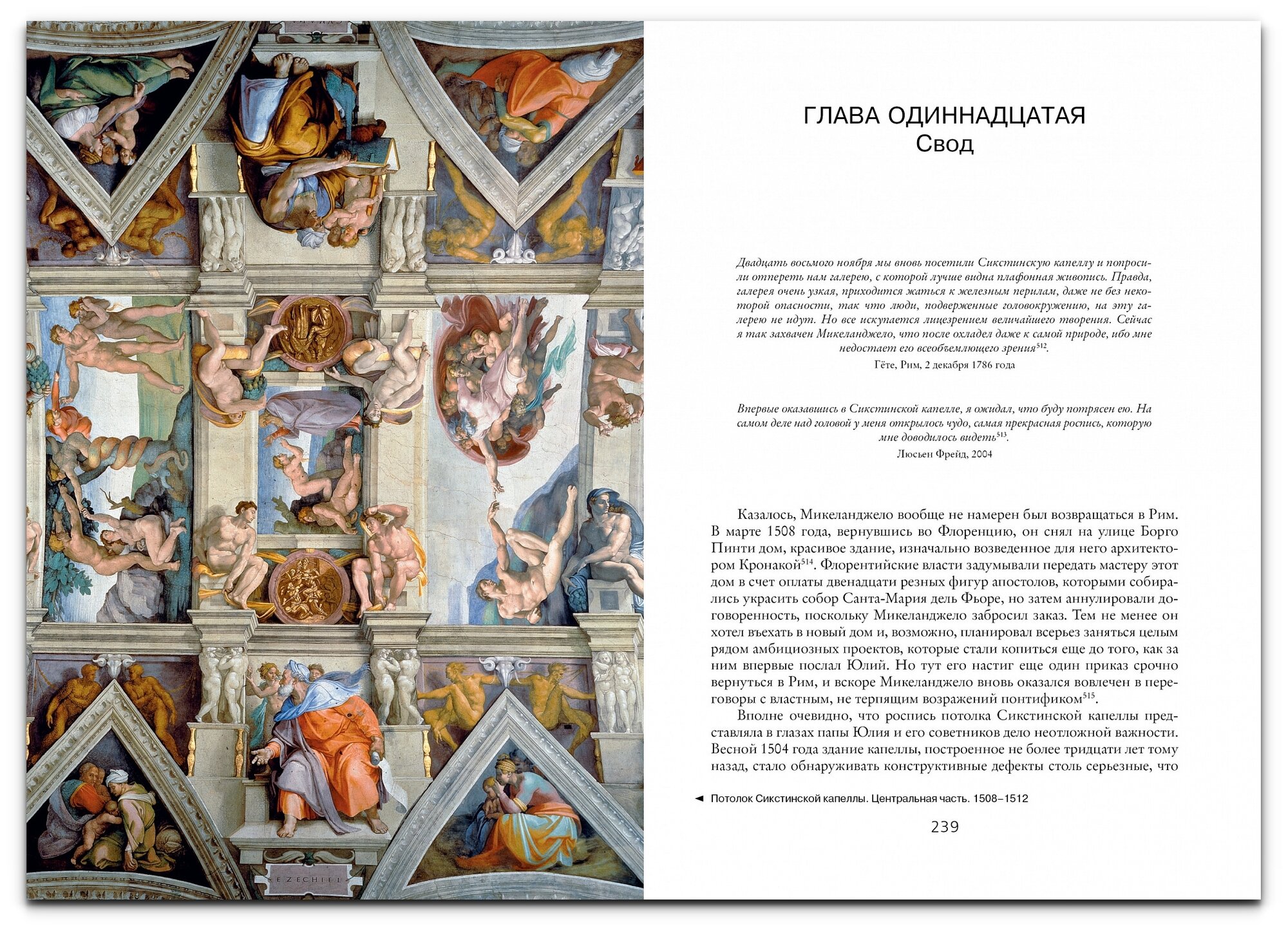 Превосходная биография Микеланджело. Книга предоставляет не только саму жизнь гения, но и открывает его характер, дает представление того времени, погружаешься в эпоху 15-16 веков. В книге постоянные ссылки на письма, воспоминания современников, документы того времени. Ещё при жизни скульптора были написаны его биографии, и в этой книге подтверждают или опровергают те или иные факты. Книга начинается с последних дней жизни Микеланджело и уже дальше идет своим хронологическим путем.