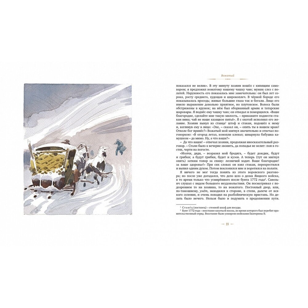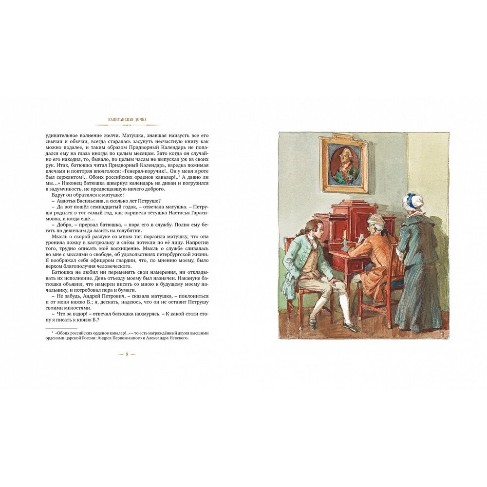 Книга понравилась, изготовлена качественно: твердая обложка, плотные листы, комфортный для глаз шрифт среднего размера. Иллюстрации современного художника А. Иткина как нельзя лучше подходят к историческому роману А.С.Пушкина. Произведение входит в обязательную школьную программу. Книга читается легко, несмотря на драматичность сюжета, потому что написана с лёгким юмором.
