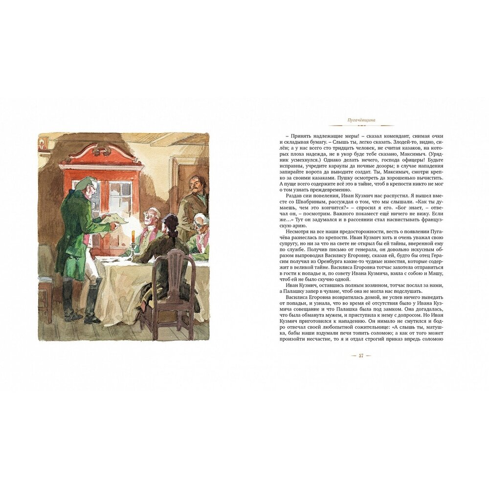 Об Александре Сергеевиче Пушкине Н. В. Гоголь когда-то совершенно справедливо сказал так: «Пушкин есть… чрезвычайное и, может быть, единственное явление русского духа: это русский человек в его развитии, в каком он, может быть, явится через двести лет… В нём… заключилось всё богатство, сила и гибкость нашего языка…» Каждое произведение Пушкина – образец безупречного литературного слова, непревзойдённого по своей красоте и мощи. И повесть «Капитанская дочка», вошедшая в это издание, – ещё одно тому подтверждение. Действие повести разворачивается во времена пугачёвщины, которую сам Пушкин характеризовал как «русский бунт, бессмысленный и беспощадный».