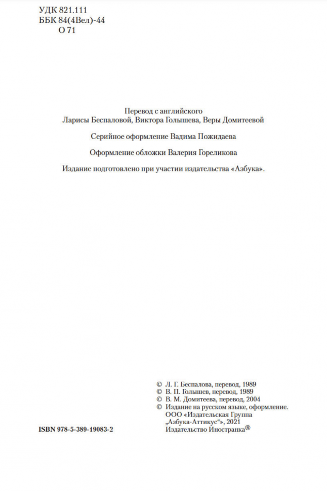 | Переводчик | Беспалова Л., Голышев В., Домитеева В. |