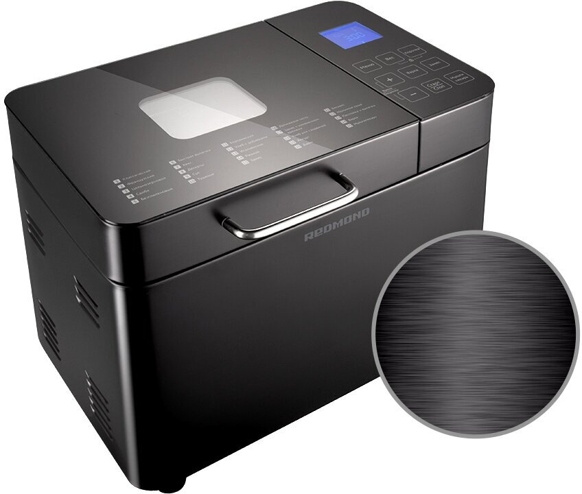 REDMOND - это высокотехнологичная и ультрасовременная хлебопечь с прочным корпусом из нержавеющей стали и сенсорным управлением. Даже несмотря на то, что называется устройство хлебопечь, на выпечке ароматного домашнего хлеба функции его не заканчиваются: годится для изготовления десертов вроде кексов и выполнения множества других кулинарных задач. Данная модель имеет 25 программ, которые позволяют готовить с помощью хлебопечи каши, супы, гарниры, и диетический хлеб.