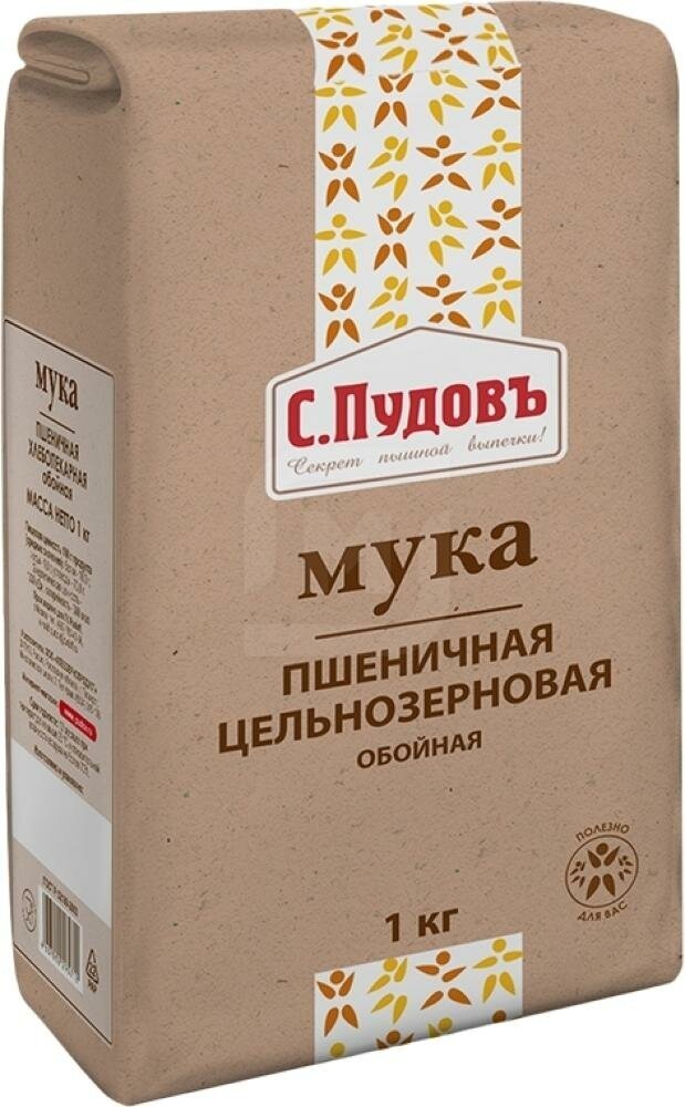 Мука С.Пудовъ Пшеничная обойная цельнозерновая 1кг