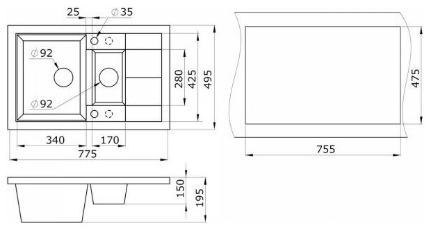 | Диаметр слива | 9 см |