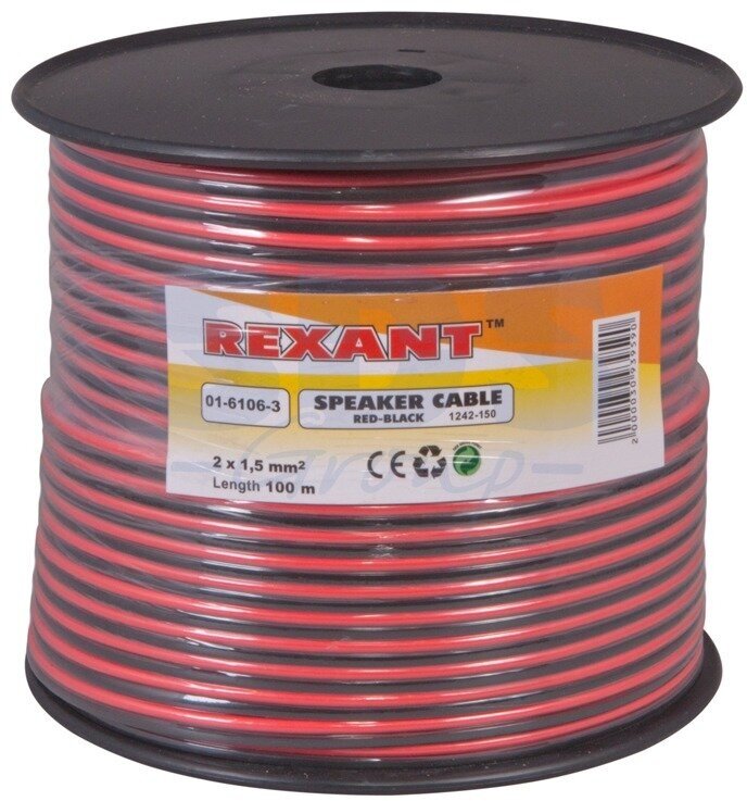 Акустический кабель 2х1,50 мм² REXANT состоит из двух параллельных многожильных проводников в изоляции из поливинилхлоридного пластиката красного и черного цвета. Разделительное основание позволяет обеспечить разделение проводников кабеля без повреждения изоляции и оголения жил.