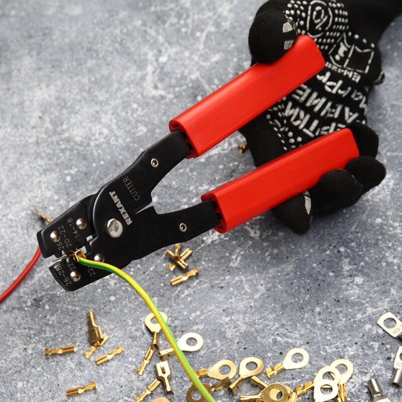 Кримпер REXANT - универсальный инструмент для обжима изолированных и неизолированных клемм с диапазоном 0.35-6.0 мм2. Корпус выполнен из высокопрочной закаленной инструментальной стали с воронением. Отличается цельнометаллической конструкцией жесткого типа. Возвратный механизм обеспечивает обратный ход рукояток. Режущая кромка специально заточки равномерно обрезает проводники. Удобные рукоятки - с нескользящим плотным синтетическим покрытием. Рабочая часть промаркирована соответствующими числами для удобства пользования.