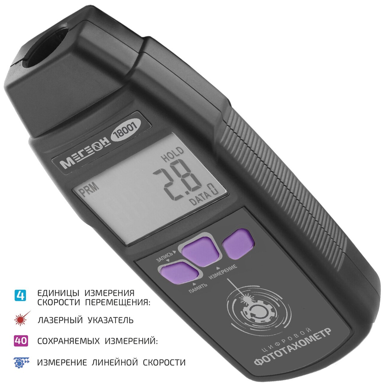 Портативный цифровой тахометр МЕГЕОН нашел широкое применение при проведении измерений скорости вращения различных объектов. Модель нашла широкое применение среди специалистов, чья профессиональная деятельность так или иначе связана с измерением скорости вращения различных объектов и предметов. Прибор является высокоточным измерительным инструментом, который способен измерять скорость вращения в диапазоне оборотов от 2,5 до 99999 об/мин на расстоянии 5...50 см. Прибор оснащен функцией определять минимальные, средние и максимальные показатели измерений, которые автоматически сохраняются в память ёмкостью 96 ячеек. При этом скорость измерения составляет примерно 0,8 секунды. Для простоты измерений предусмотрен лазерный целеуказатель, а благодаря эргономичной форме корпуса из прочного пластика достигается максимальное удобство эксплуатации.Преимущества Лазерная технология измерений Возможность сохранения результатов измерений в памяти прибора Высокое разрешение Автоматический выбор диапазона ЖК-дисплей с подсветкой Эргономичный дизайн