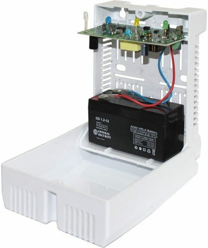 12 В, 1 А, пластиковый корпус под АКБ 7 Ач. Соответствует ФЗ 123 и ГОСТ Р 53325-2012: 3 индикатора Сеть, АКБ, Выход и 1 информационный выход, защита выхода от перегрузки и КЗ, защита АКБ от глубокого разряда, КЗ и переполюсовки, контроль наличия АКБ, холодный пуск.