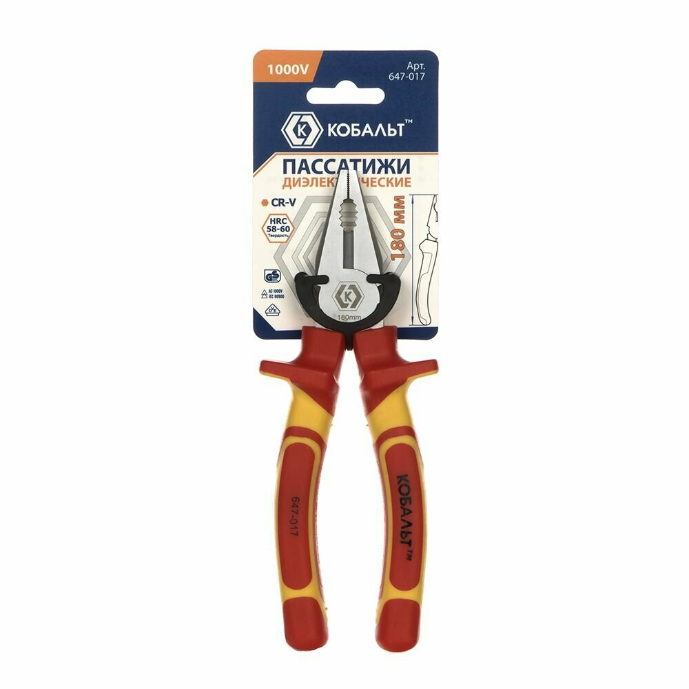 | Прочие особенности и свойства | Пассатижи КОБАЛЬТ диэлектрические, 180 мм, CR-V (1 шт.) подвес арт. 647-017 |