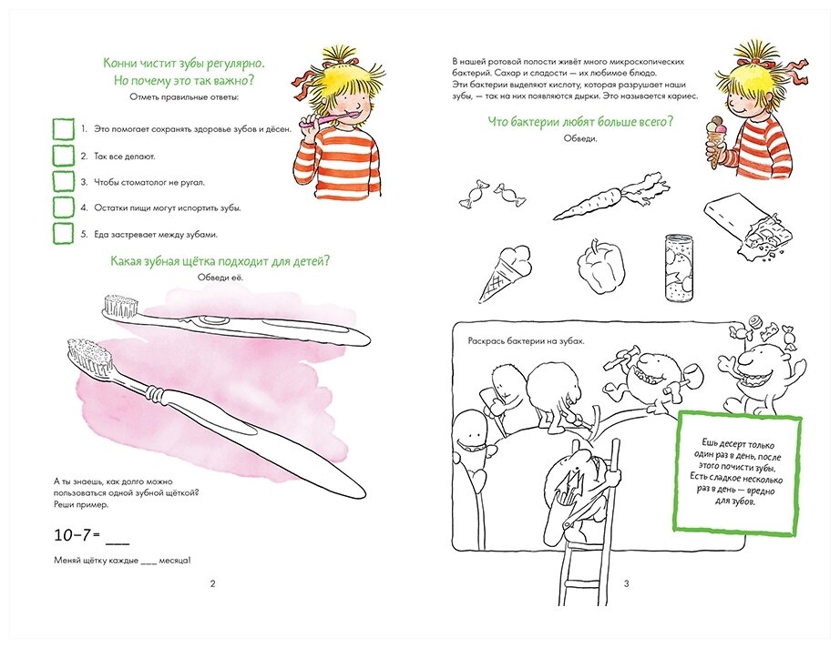 Вместе с Конни вы легко объясните ребенку, почему нужно чистить зубы. А задания и игры сделают важный процесс обучения веселым и увлекательным!
