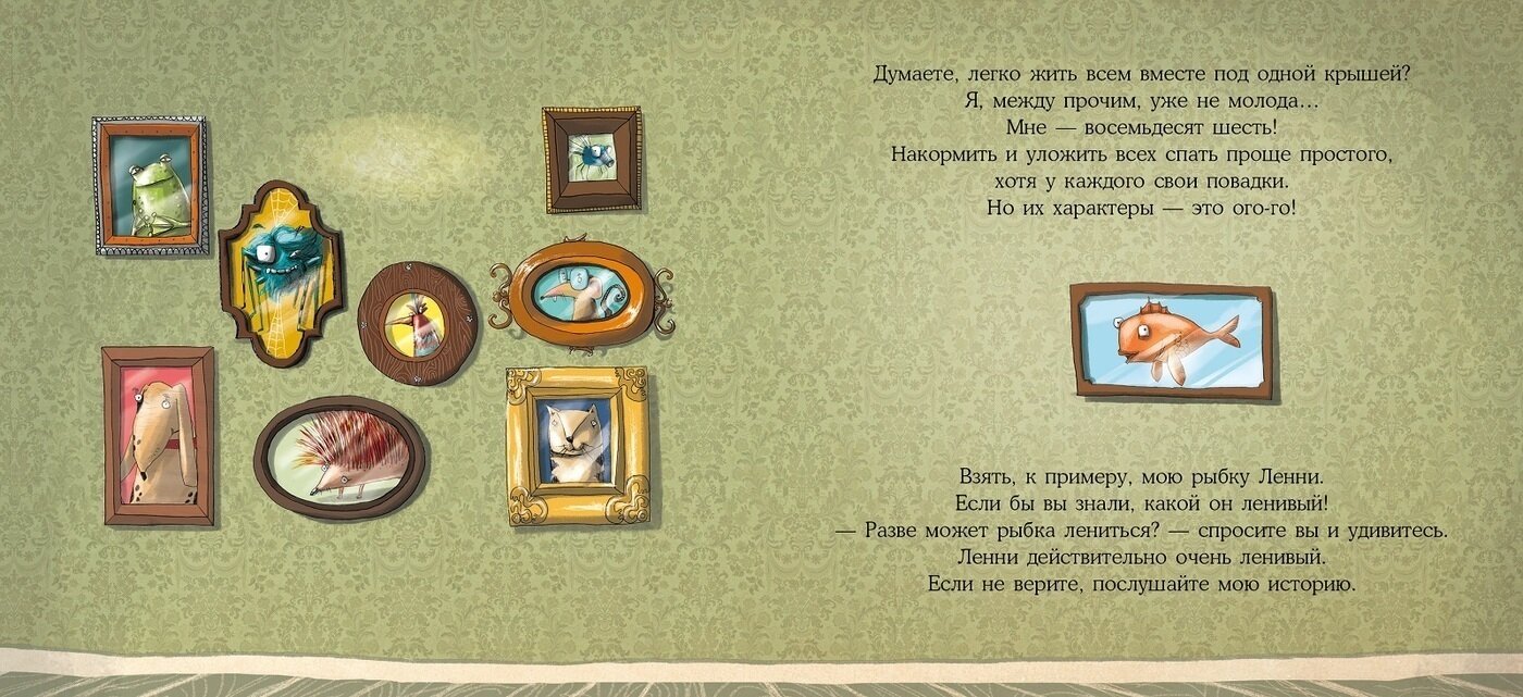 В доме бабушки Лейлы собрались девять животных с непростыми характерами: кто-то упрямится, кто-то капризничает, кто-то ревнует. Рыбка Ленни, например, обожает лениться! Пока его друзья готовили праздничную вечеринку, он даже плавником не шевельнул — и пропустил всё веселье.
