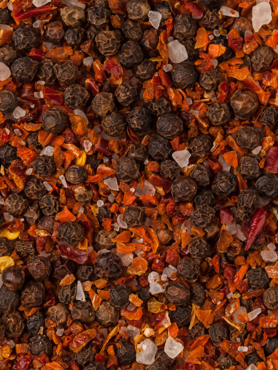 Ароматный черный перец дополнен пряными специями и йодированной солью.