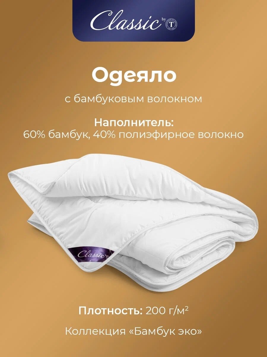 Одеяло двуспальное всесезонное облегченное бамбук 175х200 Сlassic by T Бамбук Эко (размер: 2 спальные)