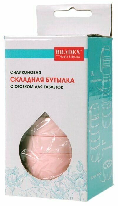 - Bradex KZ 0656; KZ 0657 Силиконовая складная бутылка с отсеком для таблеток