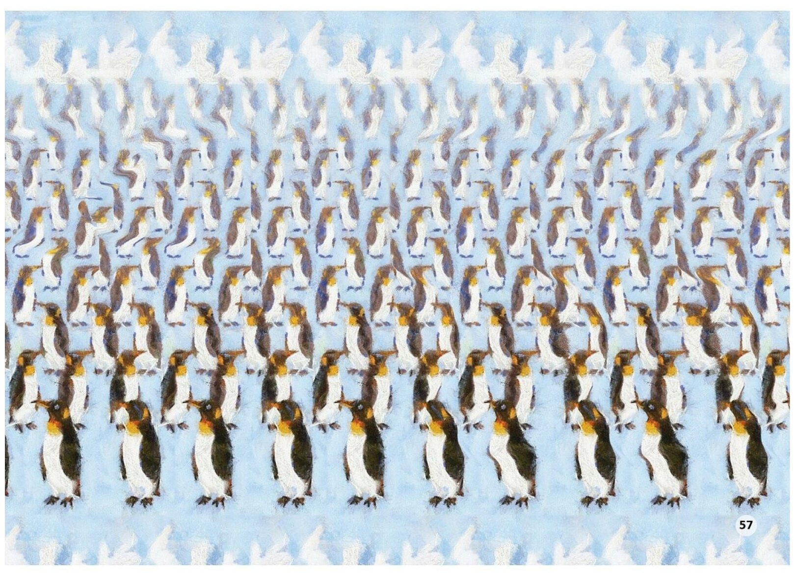 Когда-то в детстве у меня были аналогичные альбомы, где нужно было смотреть на картинку определенным образом, чтобы проявилось объемное изображение. Но тогда эти альбомы использовались больше для развлечения.