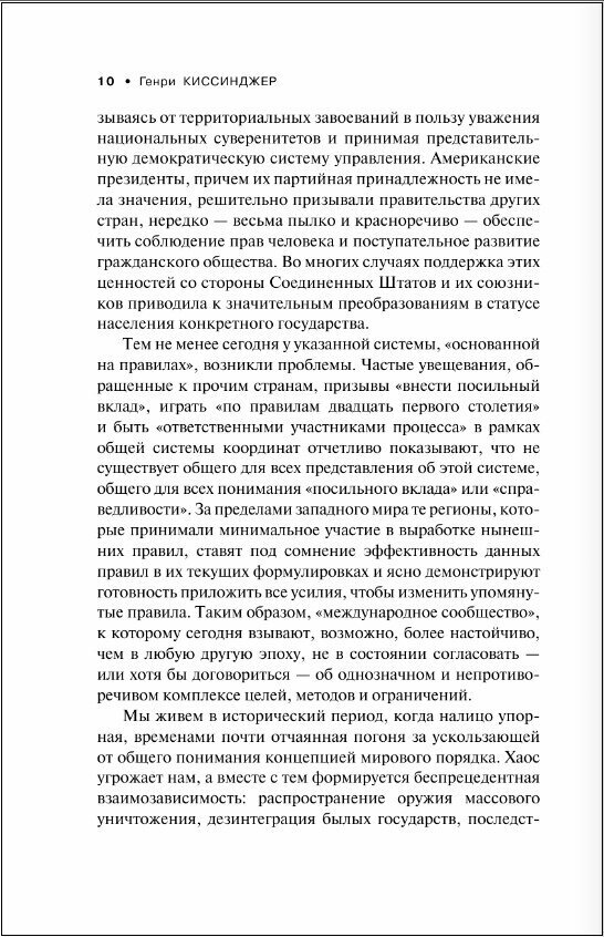 С одной стороны, Г. Киссинджер, вроде как озабочен проблемой нарушения миропорядка, спокойного, взаимовыгодного развития всех стран, но с другой, акцент в беспокойстве сделан на проблему разрушения принципа "баланса" с господством США... Так как "Американская идея" - мессианство США во спасение мира - не предполагает, чтобы кто-то еще был в статусе гегемона. Однако, глобализация привела к тому, что белое население и идеалы "отцов основателей" стали размываться мигрантами, поэтому проблема миропорядка, это беда всех наций в неспособности США их контролировать...