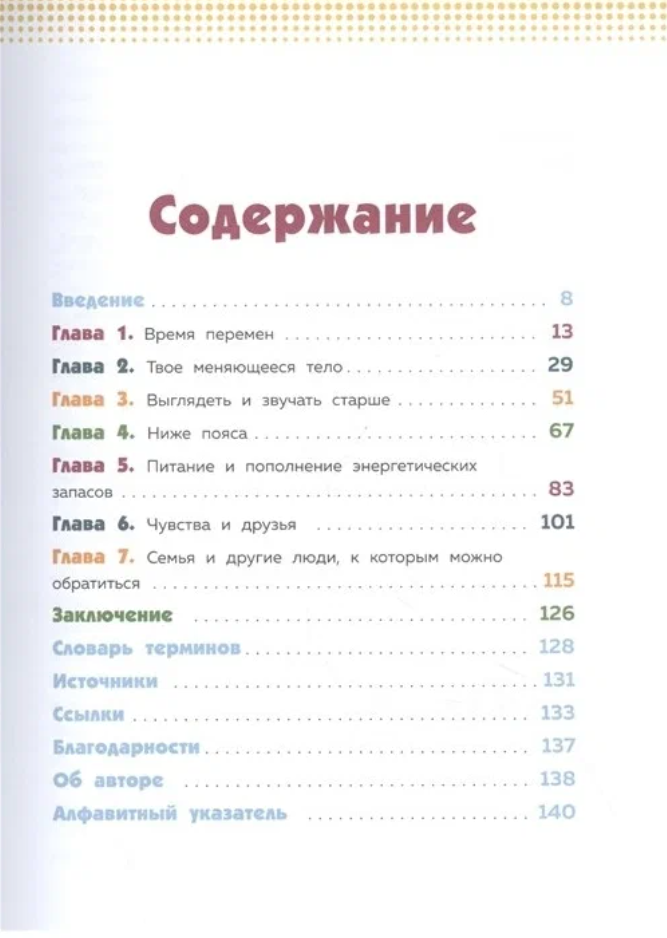 что есть в книге - статьи изменения в теле - голос, волосы, гениталии. общие советы безопасности. люди, к которым можно обращаться.