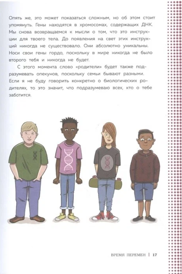 Наконец-то издатели прислушались к нам, мамам мальчиков и сделали книгу по взросления и для них! Вот реально - все, что есть - все для девчонок, как будто мальчики не вырастают и у них нет изменений в теле, связанных с пубертатом. Понравилось, что в книга охватывает все темы, которые нужны в данном возрасте, при этом в нет лишних подробностей - их родители могут рассказать и сами. Рекомендую всем родителям, с такой книгой гораздо проще вести разговоры на эти деликатные темы))