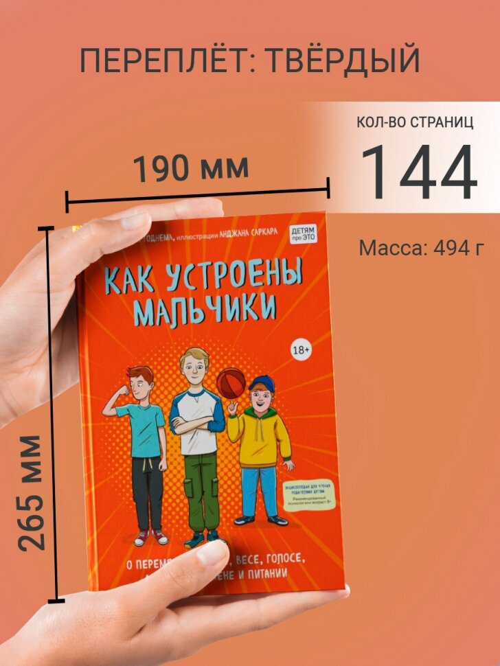 Полезная книга о половом созревании, об изменениях организма в подростковый период. Думаю, когда сын подойдёт к этому периоду, такую книгу будет полезно купить ему в бумажном варианте. Чтобы сам читал. Возрастное ограничение 18+ на обложке улыбнуло. Конечно же, книга рассчитана на более ранний возраст, в 18+ она вряд ли кому-то будет интересна. Видимо, таковы требования цензуры. Иначе ничем не могу объяснить это странное ограничение.