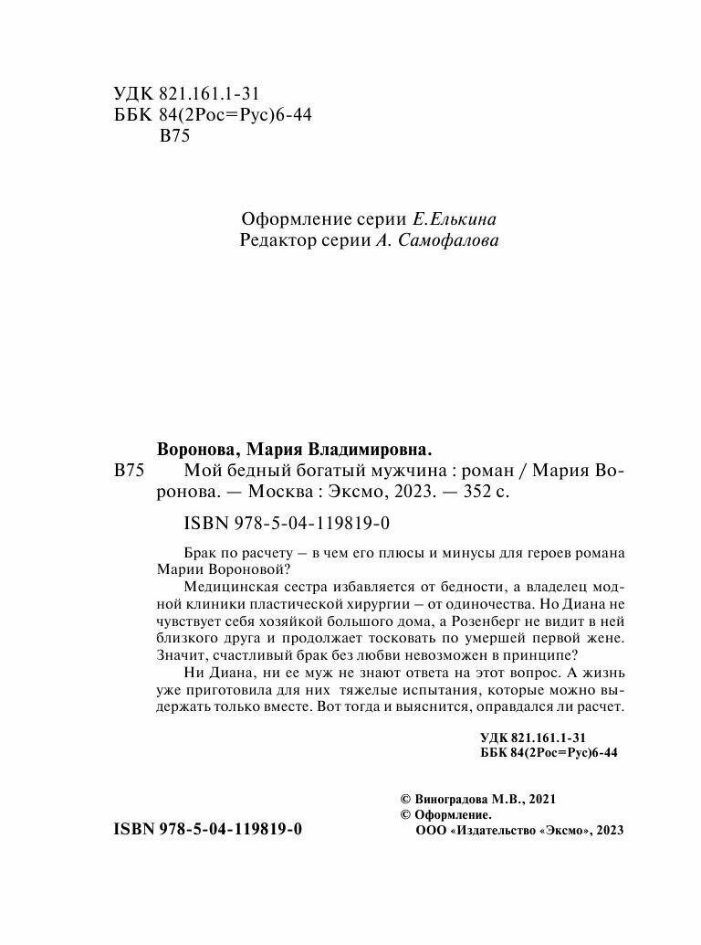 Сервис сравнения цен СкидкаГИД предлагает сравнить цены на товар «Книга: Мой бедный богатый мужчина (Воронова Мария Владимировна); ООО "Издательство "Эксмо", 2021»