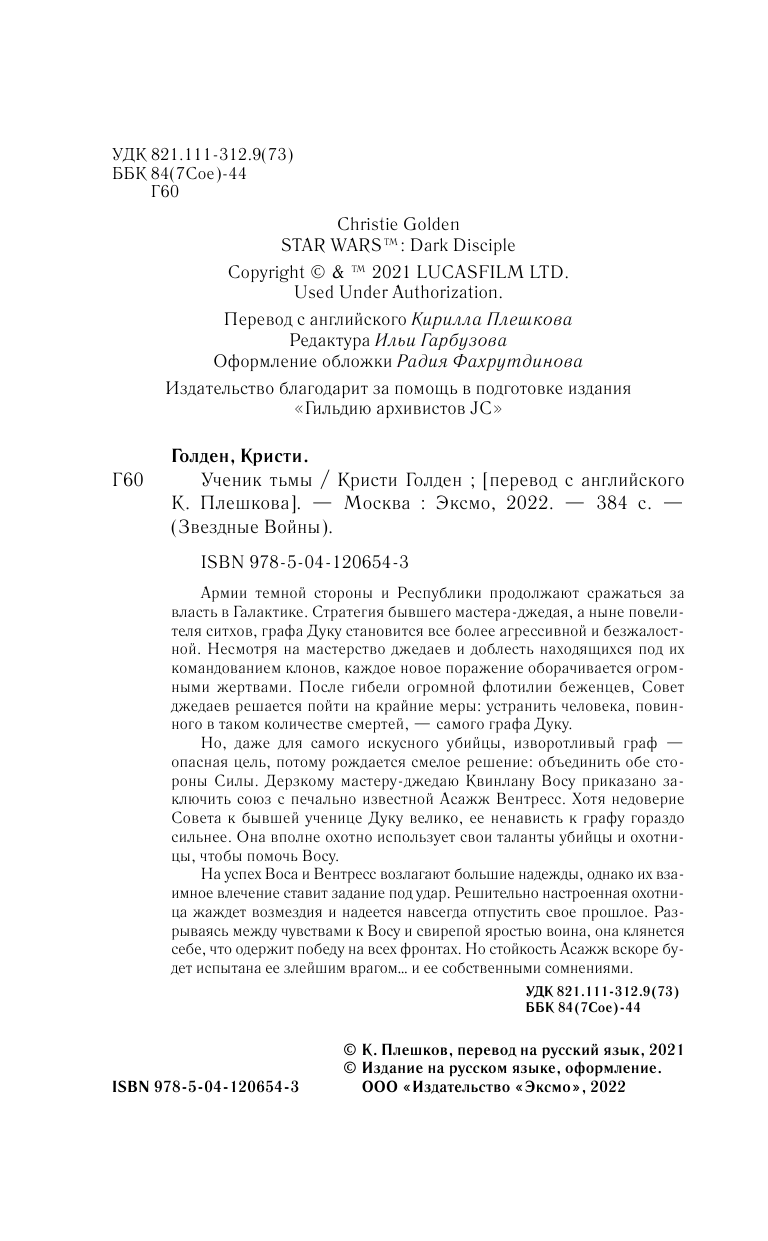 Книга: Ученик тьмы (Кристи Голден); Эксмо, Fanzon, Редакция 1, 2022