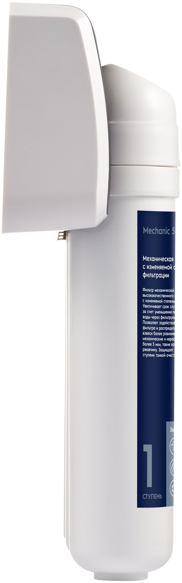 Ступень механической очистки с градиентной структурой обеспечивает надежное удаление механических примесей, таких как песок, ил, ржавчина. Последующая ступень сорбционной очистки удаляет бактерии, хлор и хлорорганические примеси.
