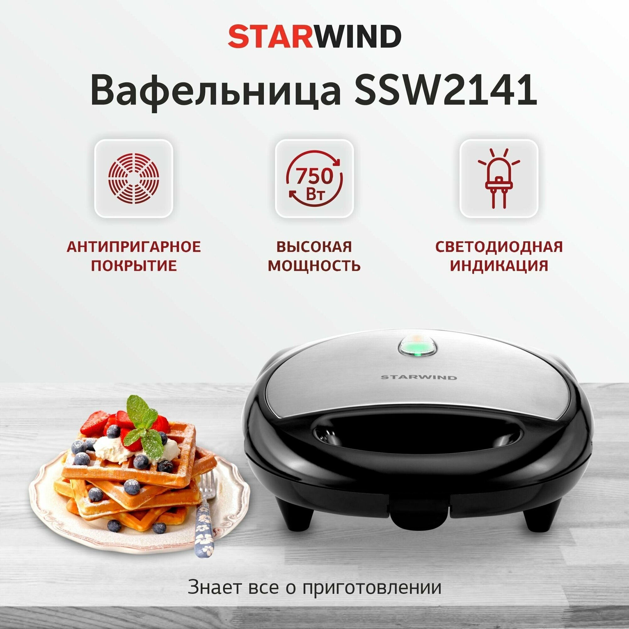 Вафельница STARWIND черный SSW2141
