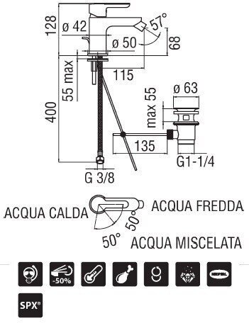 Смеситель для биде Nobili . Аэратор с антиизвестковым покрытием, донный клапан, шарнирная форсунка, гибкая подводка из нержавеющей стали 3/8”, горизонтальный монтаж на чашу. Технология WATERSAVING была разработана в целях снижения расхода воды. Для этого применяется динамический ограничитель расхода, который тормозит движение рычага вверх, позволяя уменьшить скорость потока (до 50%) при сохранении значительного объема воды на выходе.