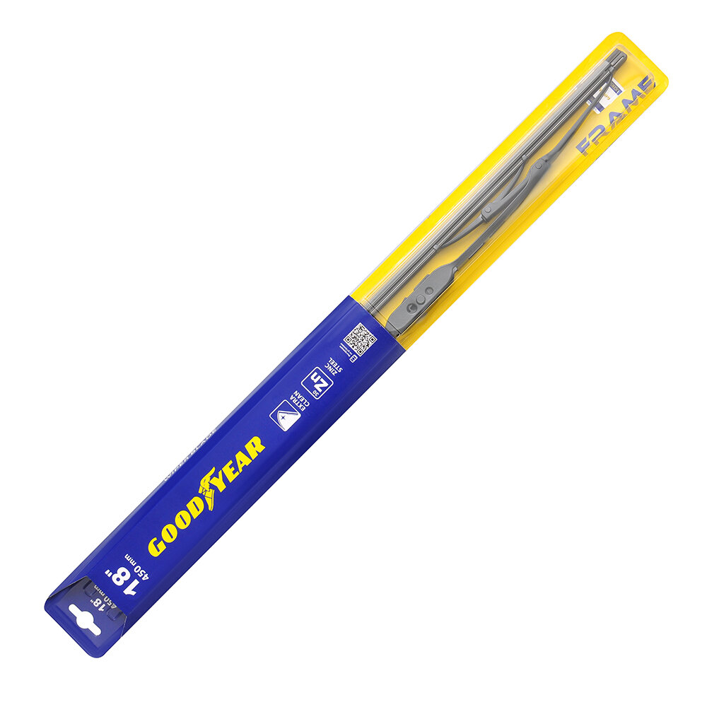 Удобная каркасная щетка стеклоочистителя Goodyear «Frame». Специальное графитовое покрытие и уникальная форма чистящего лезвия обеспечивают великолепное удаление влаги, грязи и снега с поверхности стекла автомобиля.